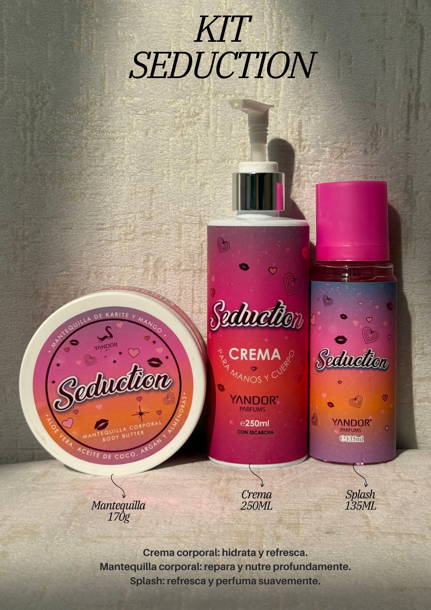 Despierta tus sentidos con el aroma envolvente y seductor de Seduction. Este kit corporal incluye crema hidratante, mantequilla corporal y splash perfumado que nutren la piel, la dejan suave y delicadamente perfumada, ideal para momentos especiales o para sentirte irresistible todos los días 💕✨